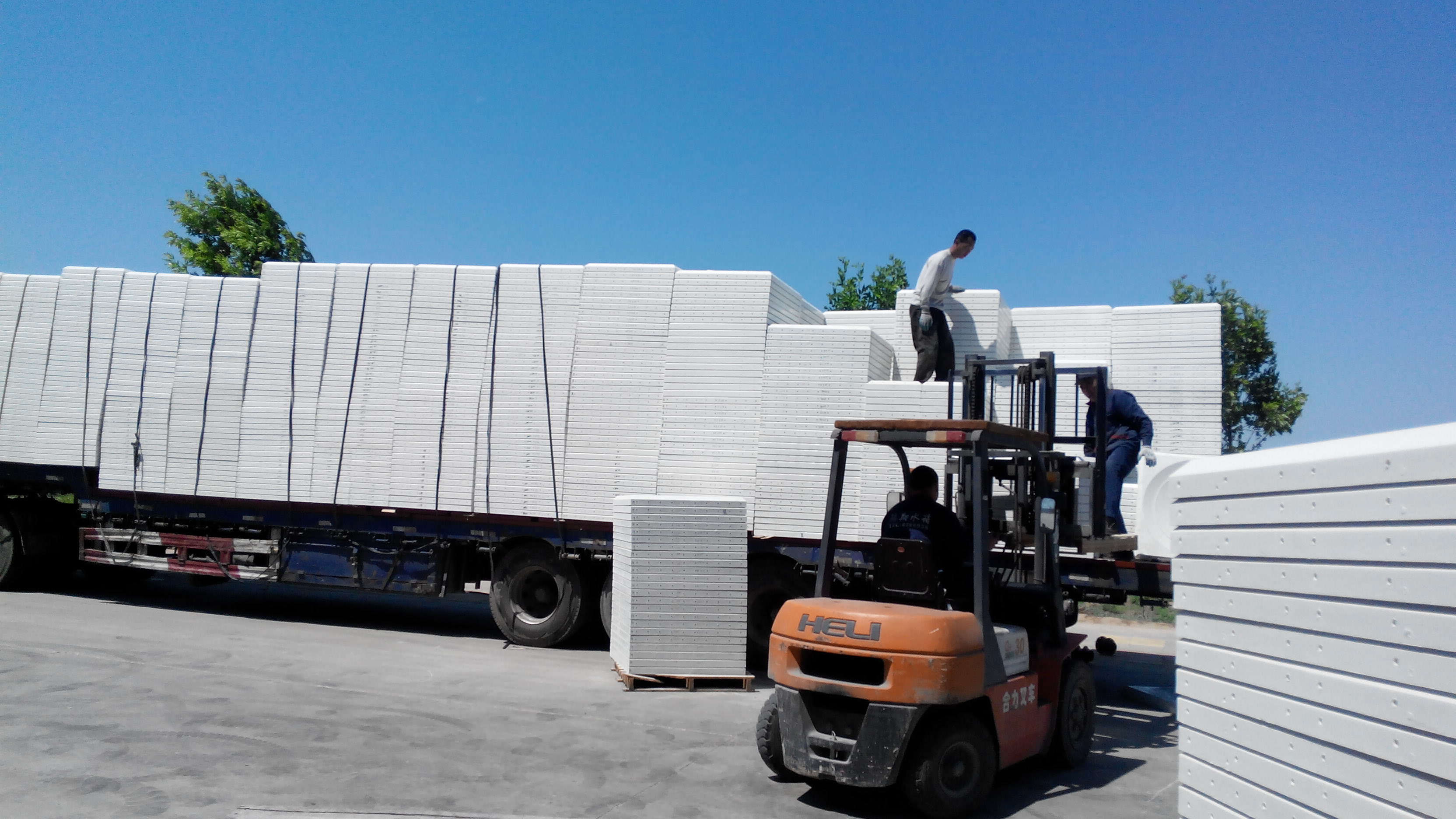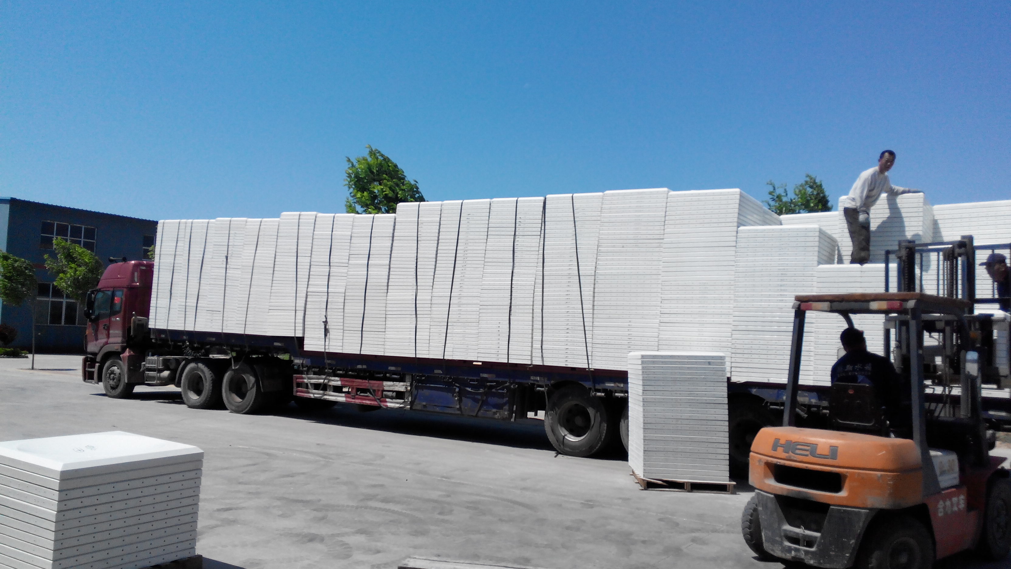 發(fā)往北京的玻璃鋼水箱裝車中