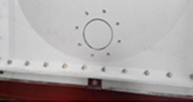 玻璃鋼水箱步:按照客戶提供的圖紙找出進水、出水、溢流、排污、氣孔的開口位置,畫上印作為標記,然后找準法蘭的角度與水箱板之間的凸面位置,放準為好,用鉛筆畫上印,在對準法蘭的螺栓口進行打孔,如以下示意圖: