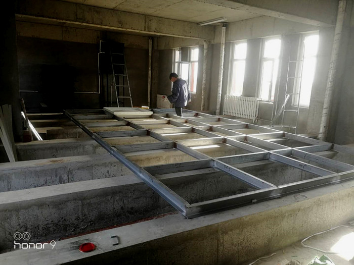安裝人員現(xiàn)場焊接完槽鋼底座正在擺放水箱底板,焊接槽鋼底座的目的是讓水箱承受力更均勻,使用壽命更長久。