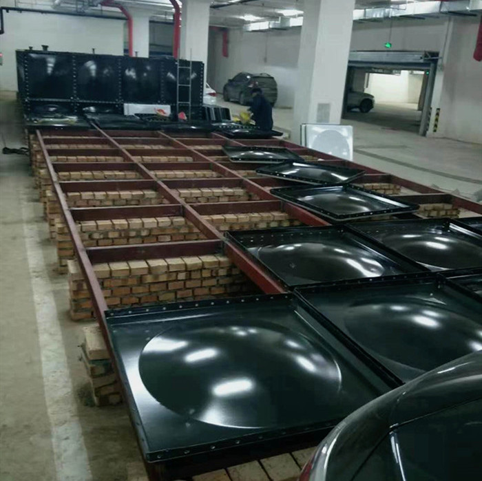 1、搪瓷鋼板水箱安裝水箱底座:將槽鋼底座對角線的尺寸較正,在底座每個間隙的情況下再進行焊接,焊接完畢后整臺底座是否水平,如不水平加鐵板與基礎墊平。