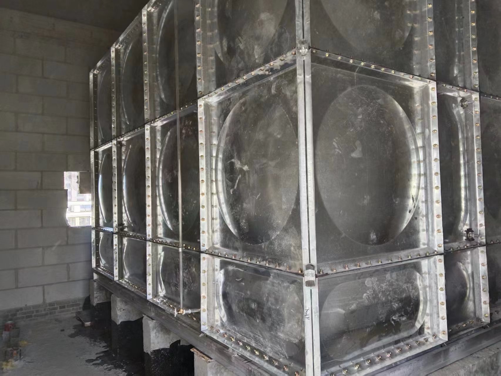 我廠承接的天津市靜海區(qū)靜海萬(wàn)達(dá)營(yíng)銷(xiāo)中心一臺(tái)25立方鍍鋅鋼板水箱已經(jīng)安裝試水完成。現(xiàn)場(chǎng)圖如下: