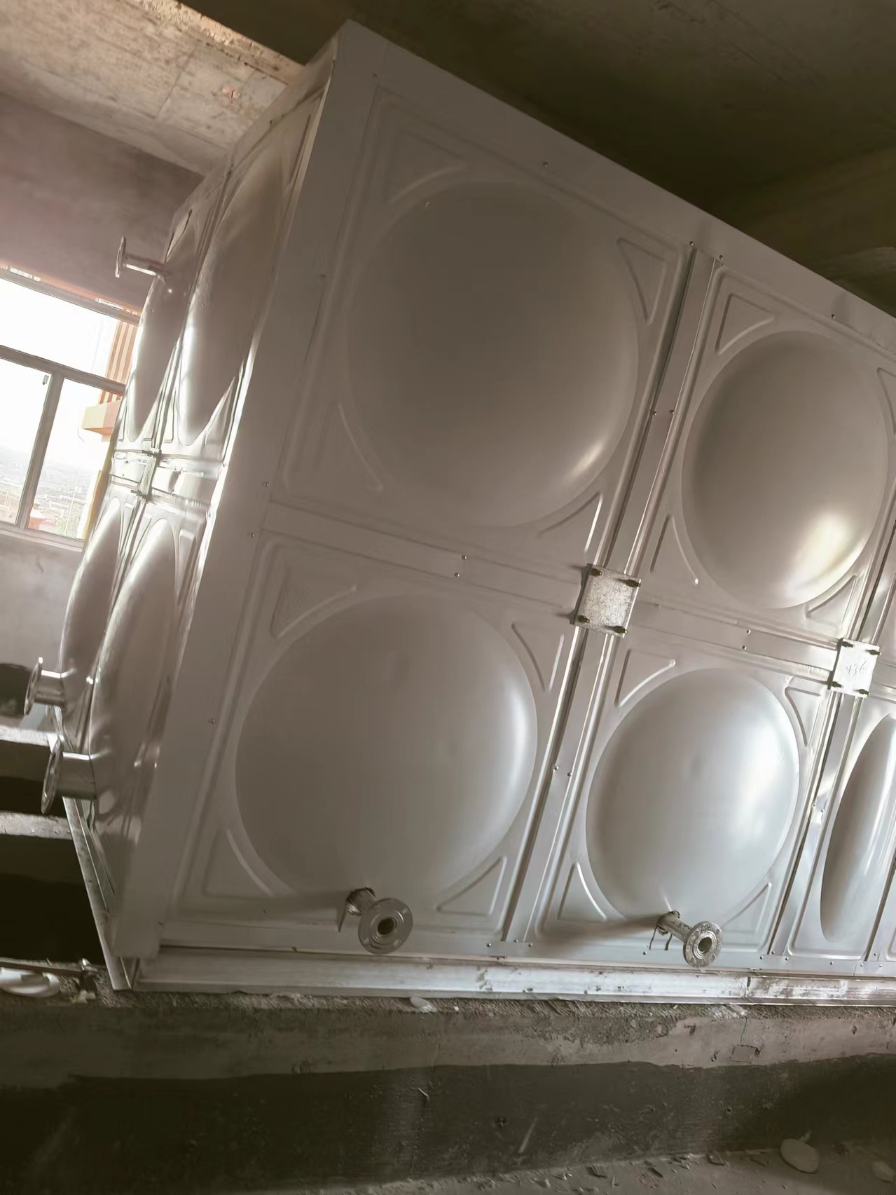水箱用做消防水箱,內(nèi)部采用SMC玻璃鋼材質(zhì),外部采用聚氨酯加彩鋼板外殼保溫,起到良好的保溫效果,防止冬季溫度過低,水上凍影響使用。玻璃鋼水箱應(yīng)用于普通住宅、商住樓、寫字樓、居民小區(qū)、機(jī)關(guān)、學(xué)校、酒店等的生活、消防用水;工礦企業(yè)的生產(chǎn)、生活用水;各種類型的循環(huán)水、冷卻水、熱水供應(yīng)系統(tǒng)用水;酸堿儲備等領(lǐng)域。
